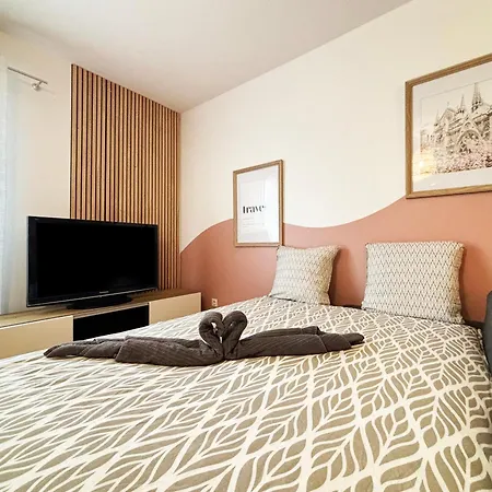 Apartament Bird Disney 4Mn-Train 6Mn -Private Parking- Paris jest wyposażony w pełnowymiarową kuchnię. Znajduje się również w ciągu 20-minutowego spaceru od restauracji Cafe des Cascadeurs, która oferuje potrawy kuchni amerykańskiej. Stacja kolejowa Val d'Europe jest około 700 m od tego apartamentu.